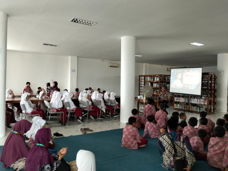 Dengan penuh semangat, para siswa disambut oleh staf perpustakaan yang kemudian mengajak mereka berkeliling untuk mengenal berbagai koleksi buku, area baca, serta fasilitas digital yang tersedia. Anak-anak terlihat antusias saat mendengarkan penjelasan tentang cara meminjam buku, pentingnya merawat buku, dan bagaimana memilih buku sesuai minat dan usia mereka.